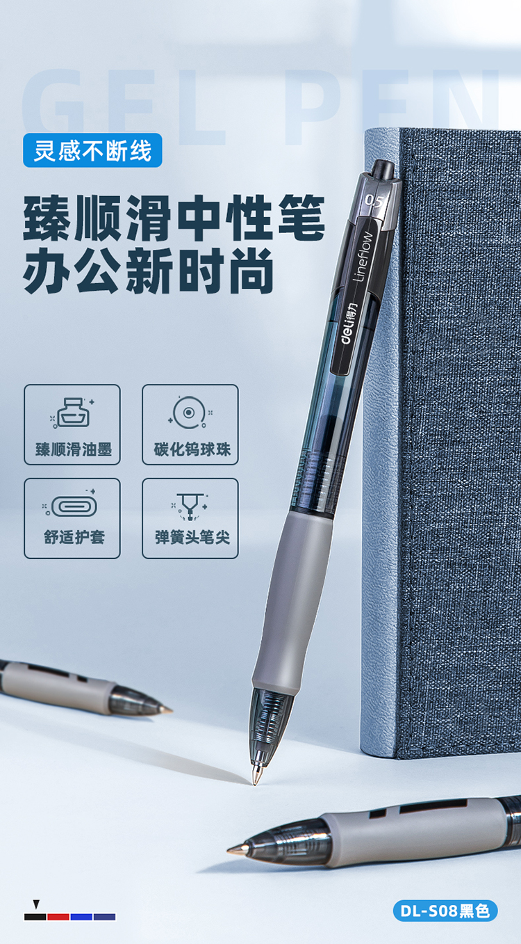 得力 中性筆簽字筆 0.5mm子彈頭S08黑 全國(guó)統(tǒng)一價(jià):21.8元