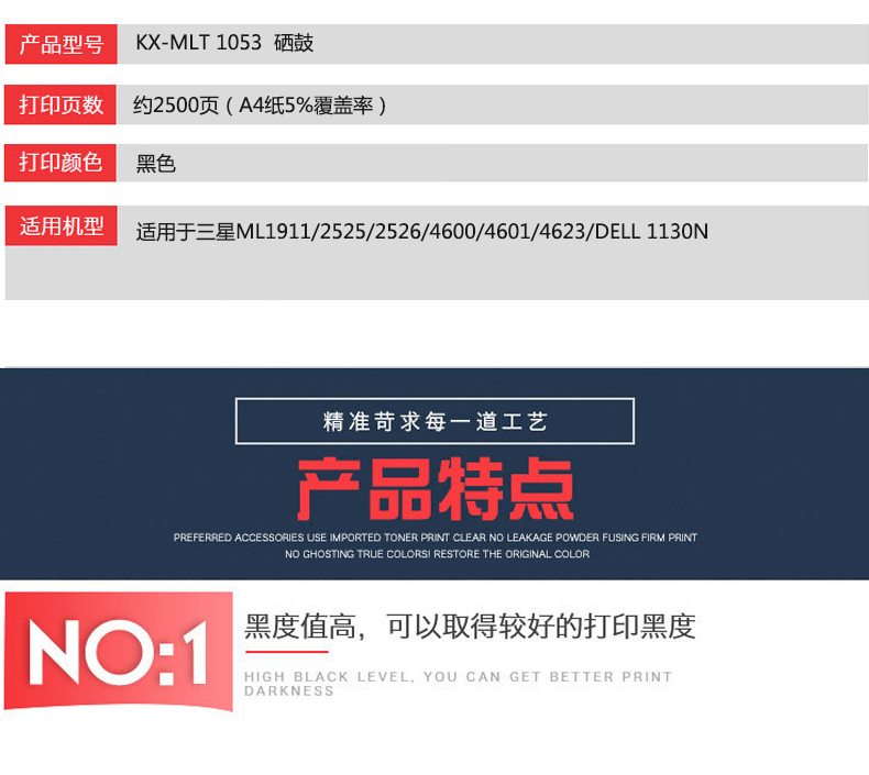凱欣標(biāo)準(zhǔn)版 KX-MLT1053粉盒 適用于三星 ML1911/2525/2526/4600/4601/4623/DELL 1130N 全國統(tǒng)一價:160元